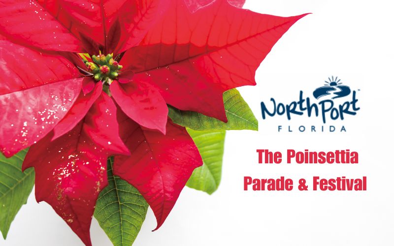 NORTH PORT, FL — The community is invited to celebrate the holiday season at the City of North Port’s signature Poinsettia event! Join us on Dec. 6 for an afternoon full of festive fun. The Poinsettia Festival, presented by Resurrection Pools, runs from 3-7 p.m., during which the Poinsettia Parade, presented by Quality TV,  steps off at 5 p.m. Please note there will be temporary road closures during the parade. Read below for all the details.