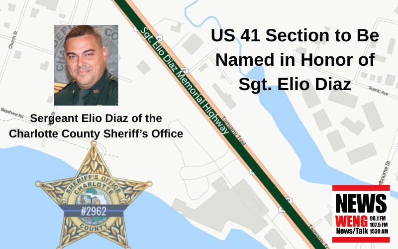 PORT CHARLOTTE, Fla. – September 5, 2025 — A portion of U.S. 41 in Port Charlotte will soon bear the name of a fallen hero. The Charlotte County Board of County Commissioners will officially dedicate a section of the roadway as the “Sgt. Elio Diaz Memorial Highway” during its meeting on September 9.